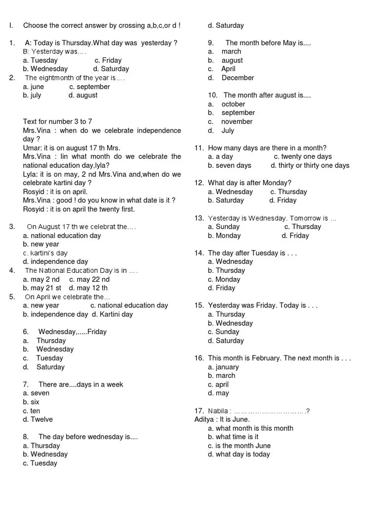 Berikut ini merupakan contoh soal semester kelas 2 sd untuk mata pelajaran bahasa inggris.